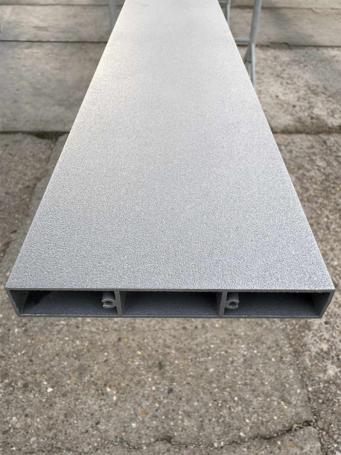 Lamely v našom portfóliu sú vyrobené z hliníku normy EN AW-6060 T66, s povrchovou úpravou práškovým lakovaním. Prášková farba je po nanesení ďalej vypaľovaná v peci. Táto povrchová úprava sa vyznačuje dlhou životnosťou, odolnosťou voči UV žiareniu a žltnutiu. Je určená pre použitie v stavebníctve, kde je rozhodujúca trvácnosť odtieňa a lesku.