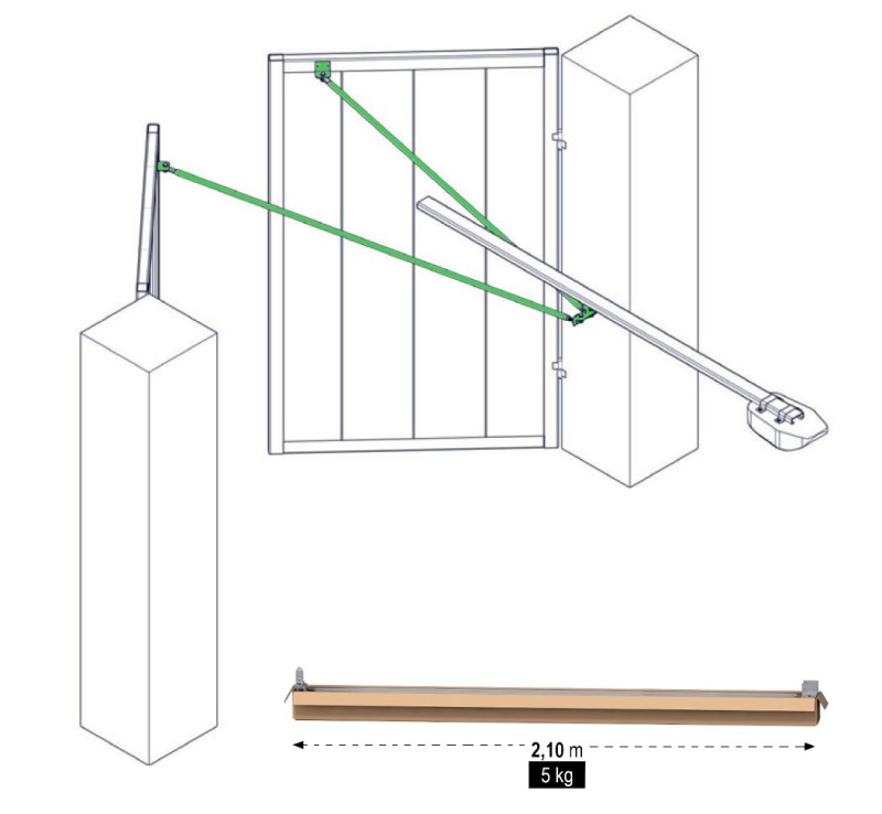 Popis produktu CAIS CHEVRON 2.5 - systém pre dvojkrídlovú garážovú bránu do 2,5m/220kg
