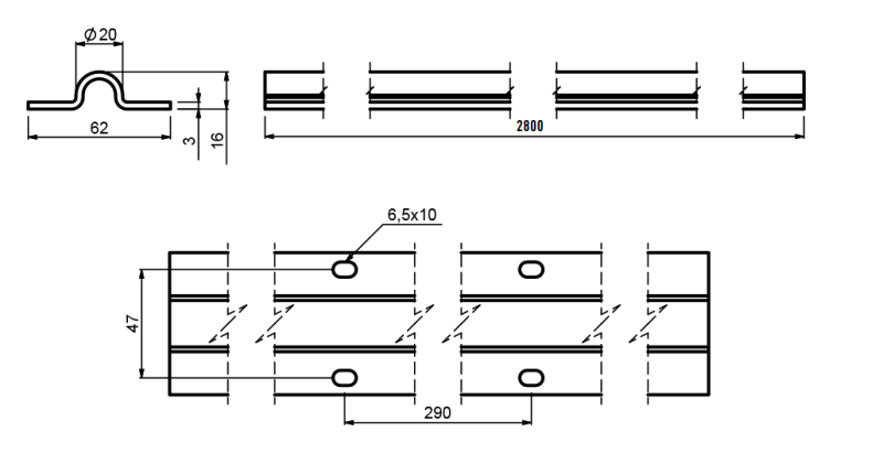Koľajnica pre posuvnú bránu pojazdovú, tvar U, s priemerom 20mm, s otvormi na uchytenie, žiarovo pozinkovaná.