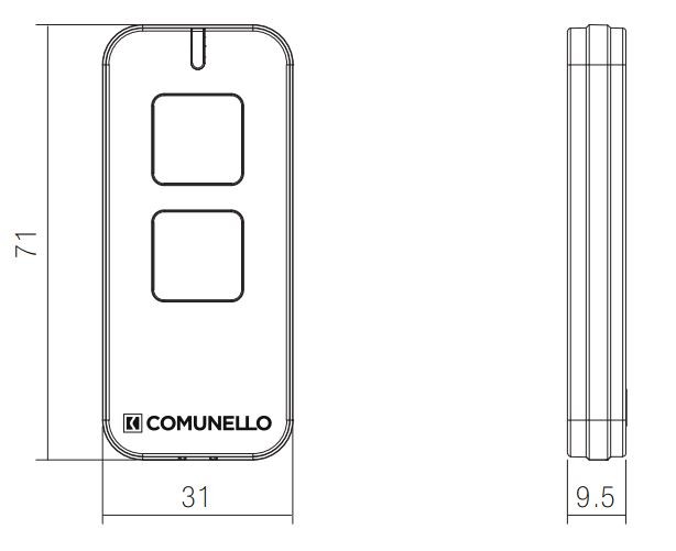 Dvojkanálový (tzn. dvojtlačítkový) ovládač Comunello VICTOR2RC je kompatibilný ku všetkým pohonom Comunello. S pomocou tohto ovládaču môžte ovládať dve zariadenia značky Comunello, prípadne zadávať jednému zariadeniu dva povely.