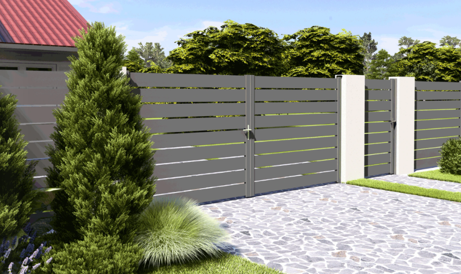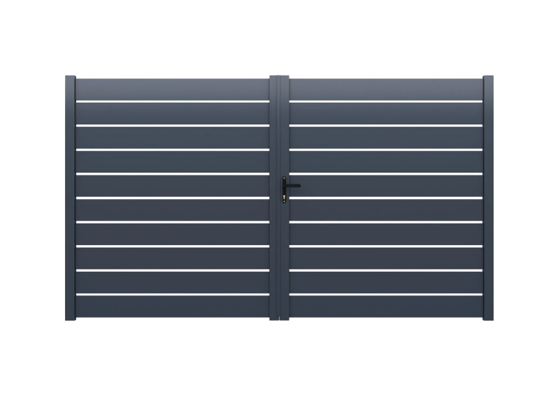Moderná hliníková krídlová brána vhodná pre rodinné domy, bytové komplexy, firemné aj priemyselné areály. Konštrukcia brány je vyrobená z kvalitnej hliníkovej zliatiny 6063-T5, ktorá je bežne používanáv exteriérových bránových a plotových systémoch pre svoju pevnosť, tvarovú stabilitu a vysokú odolnosť voči korózii.
