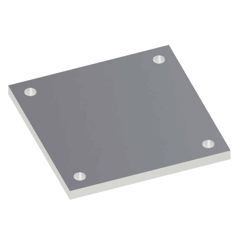 Hliníková pätka štvorcového tvaru určená na ukončenie hranolov, profilov a plotových stĺpikov s rozmermi 150x150 mm. Hrúbka pätky je 10 mm.