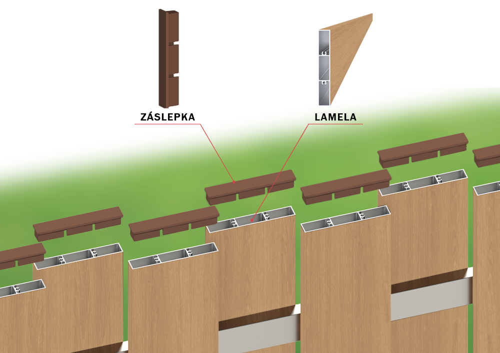 Lamely je tiež možné montovať vertikálne, s použitím záslepiek, ktoré sa zhora zasúvajú do lamely.
