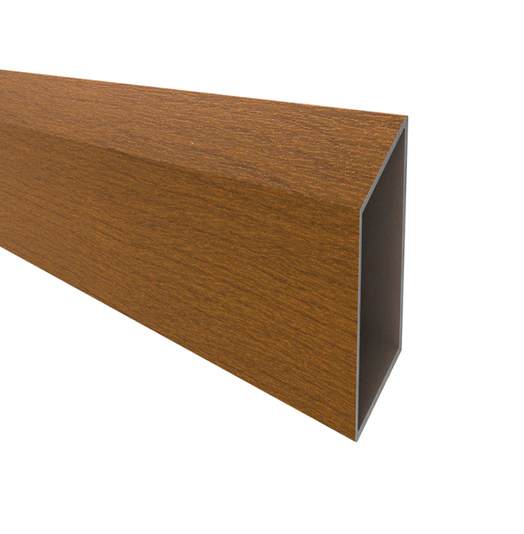 Popis produktu Hliníková plotová lamela 105x20 mm, tvar kosodĺžnik, drevodekor so štruktúrou, dekor SOLANSA (Zlatý dub)
