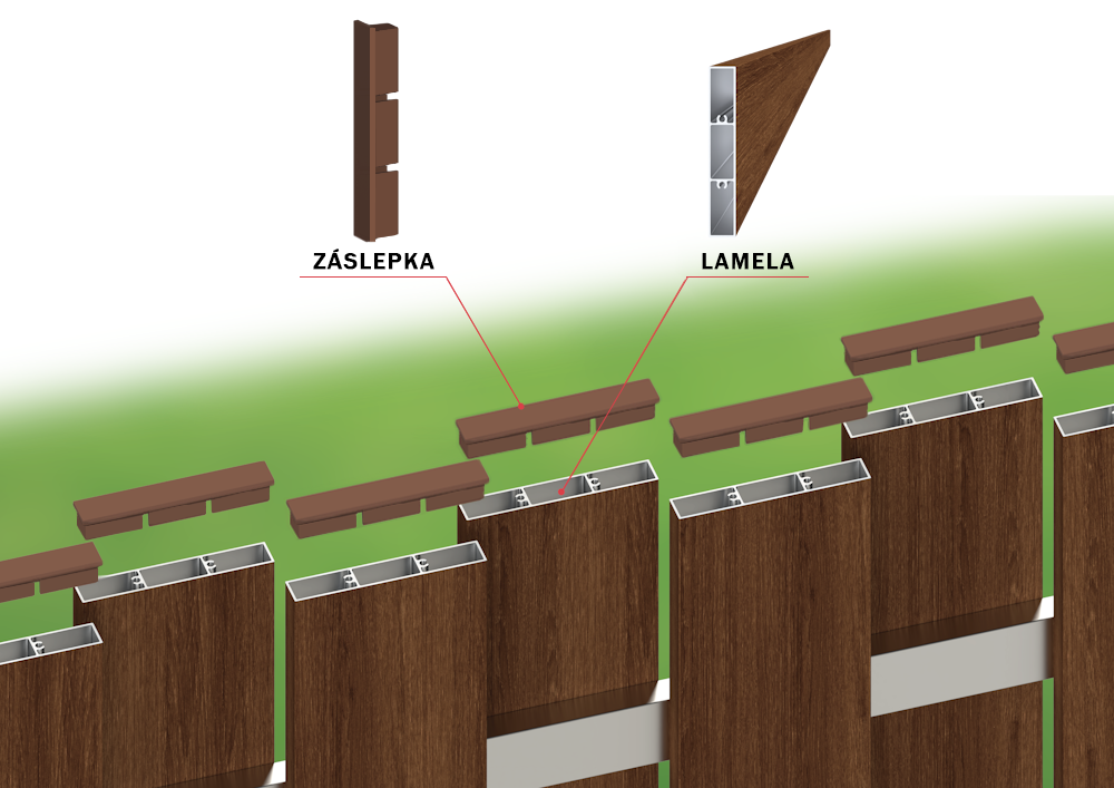 Hliníková lamela, s povrchovou úpravou vo farbe drevo dekor so štruktúrou, môže byť použitá ako výplň plotu, výplň brány, alebo výplň akéhokoľvek iného priestoru. Lamela má tvar obdĺžnik s výškou 80 mm, a šírkou 16 mm a dodáva sa v dĺžke 2m, 3m alebo 6m.