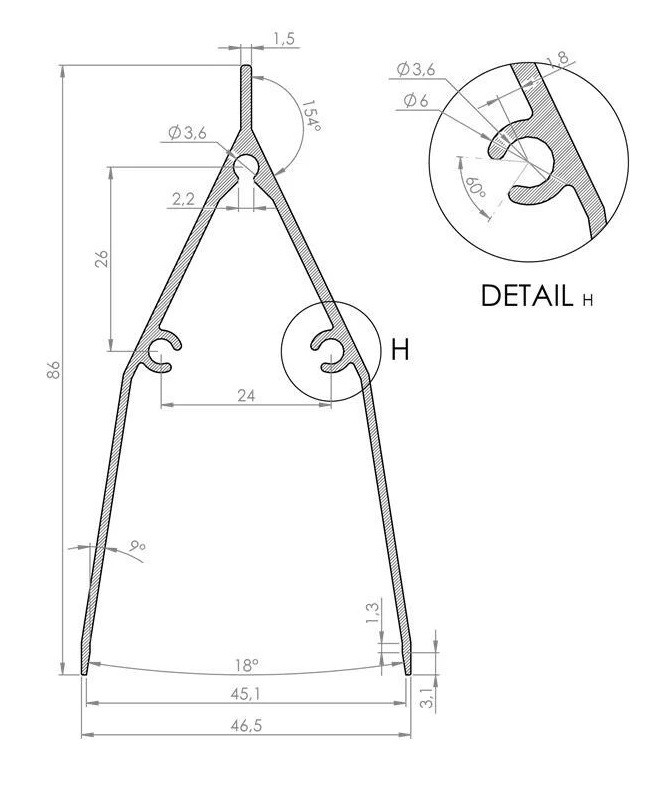 Materiál: prírodný hliník (EN AW-6060 T66)