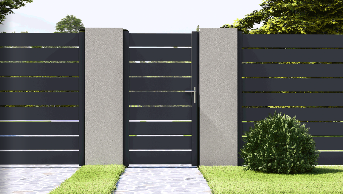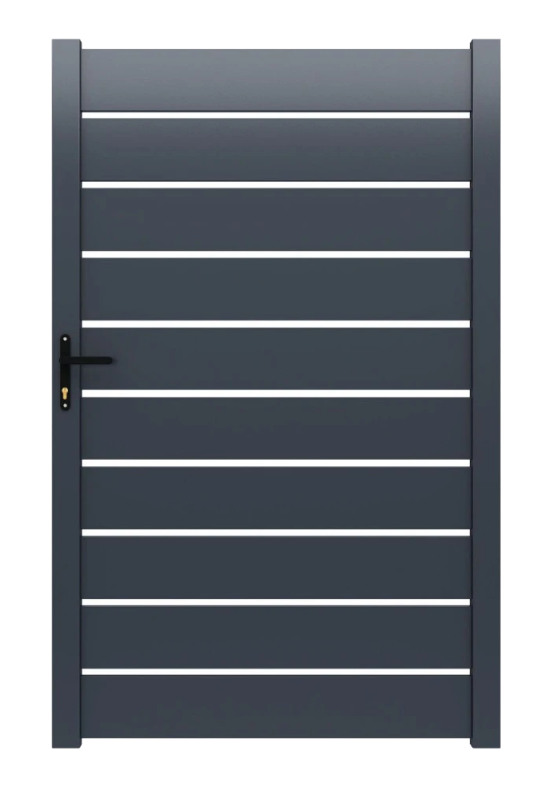 Moderná hliníková vstupná bránka určená pre rodinné domy, bytové projekty, firemné a priemyselné areály. Konštrukcia je vyrobená z kvalitnej hliníkovej zliatiny 6063-T5, ktorá je štandardom pre exteriérové systémy vďaka svojej pevnosti, tvarovej stabilite a vysokej odolnosti voči korózii.
