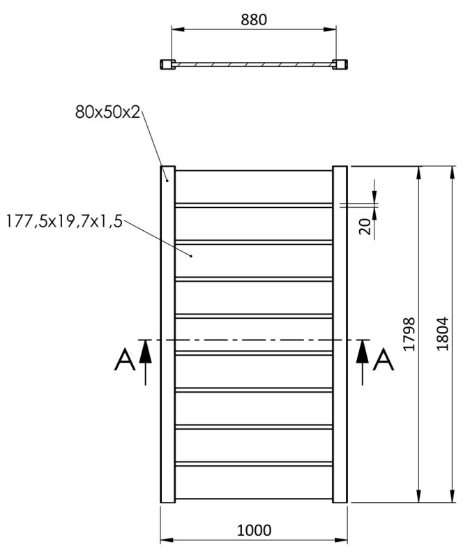 - rám: 80 x 50 x 2,0 mm