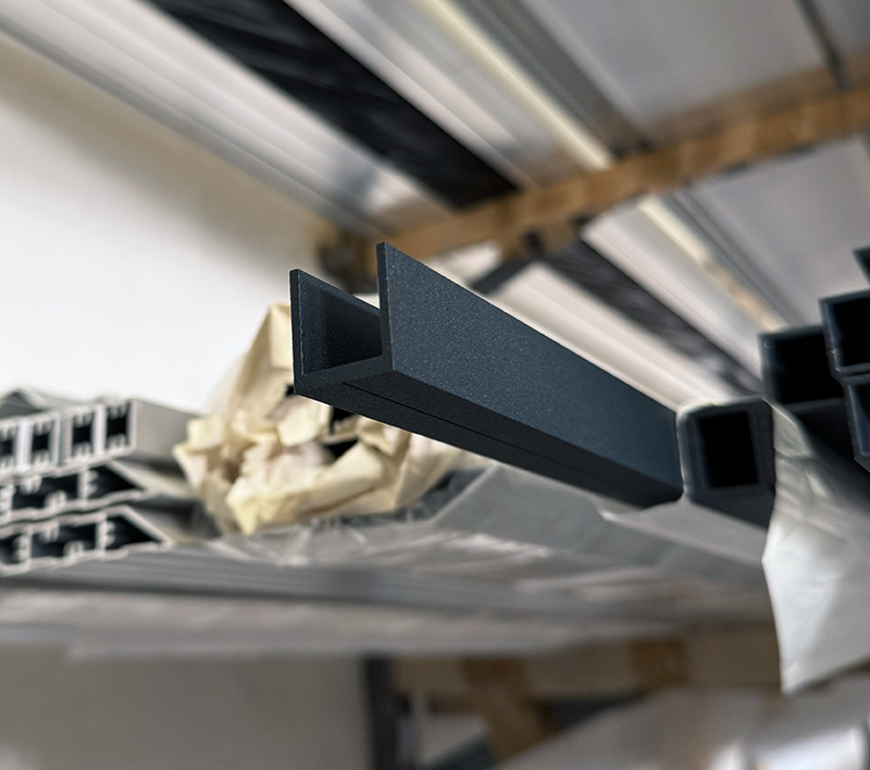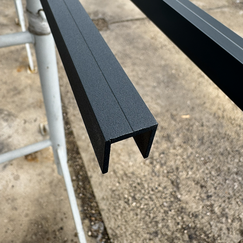 Všeobecne je hliník vyborný materiál s odolnosťou voči korózii, vplyvu počasia a má dlhú životnosť. Uchytávací profil je vyrobený z hliníku normy EN AW-6060 T66 a je dodávaný s povrchovou úpravou vo farbe antracit RAL 7016 so štruktúrou.