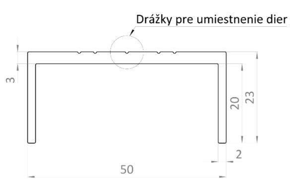 Popis produktu Hliníkový uchytávací profil pre lamely, tvar U, šírka 50 mm, sivá RAL9007