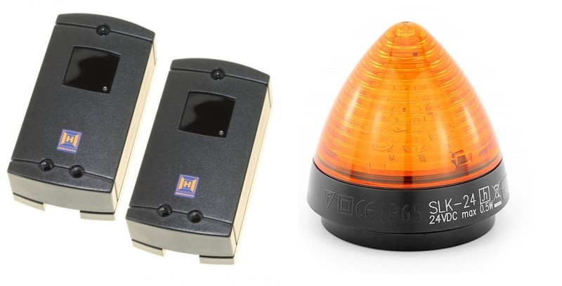 Sada pozostáva z jedného páru fotobuniek Hormann EL301 s prechodkami a výstražného majáku Hormann SLK 24.
