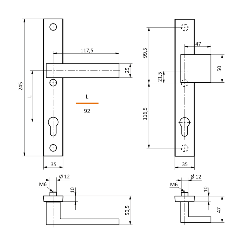 Popis produktu Kľučka hliníková s pevnou guľou, rozteč 92mm, čierna matná