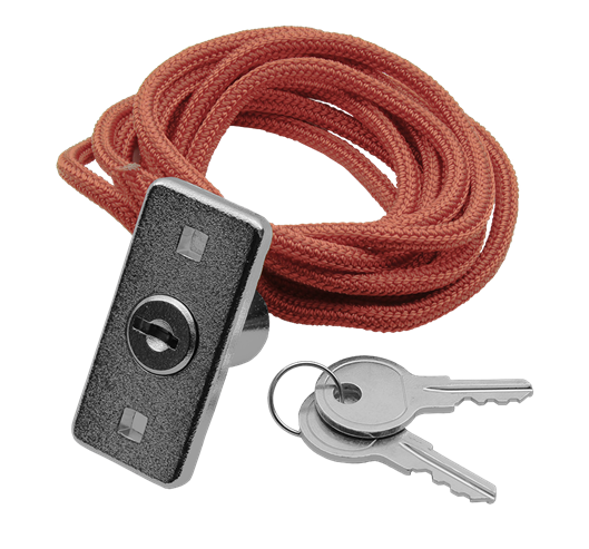 Odblokovacie lanko so zámkom z nehrdzavejúcej ocele LiftMaster 1702EV, slúži na manuálne otvorenie garážovej brány v prípade výpadku el. prúdu.