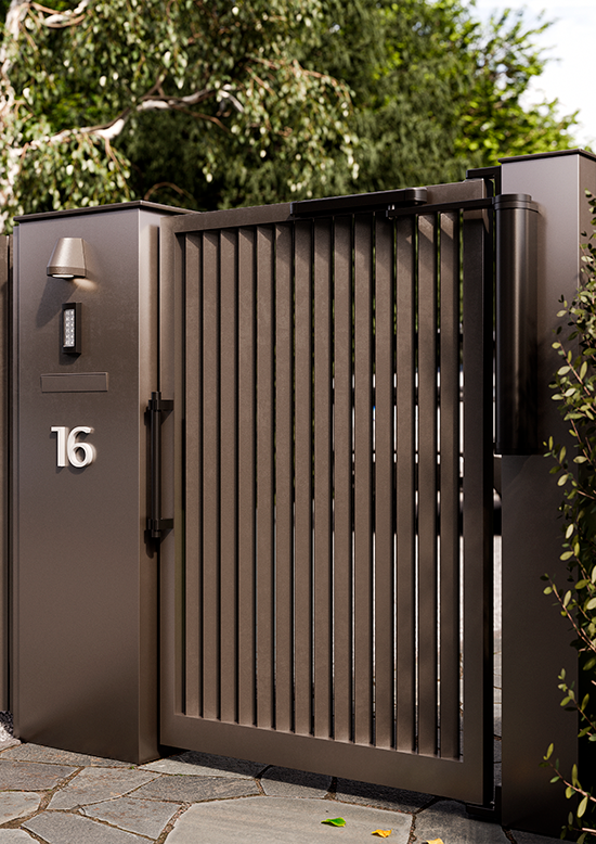 - Jednoduchá inštalácia, minimálna príprava brány a možnosť kombinácie s hliníkovými, oceľovými či drevenými stĺpmi.