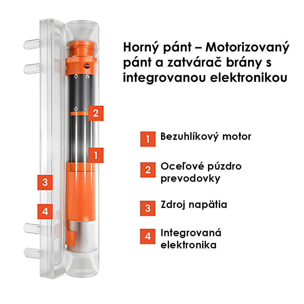Popis horného motorizovaného pántu pohonu Locinox MAGnus: