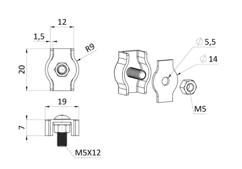Popis produktu Nerezová lanková svorka - simplex pre nerezové lanko s priemerom 4mm