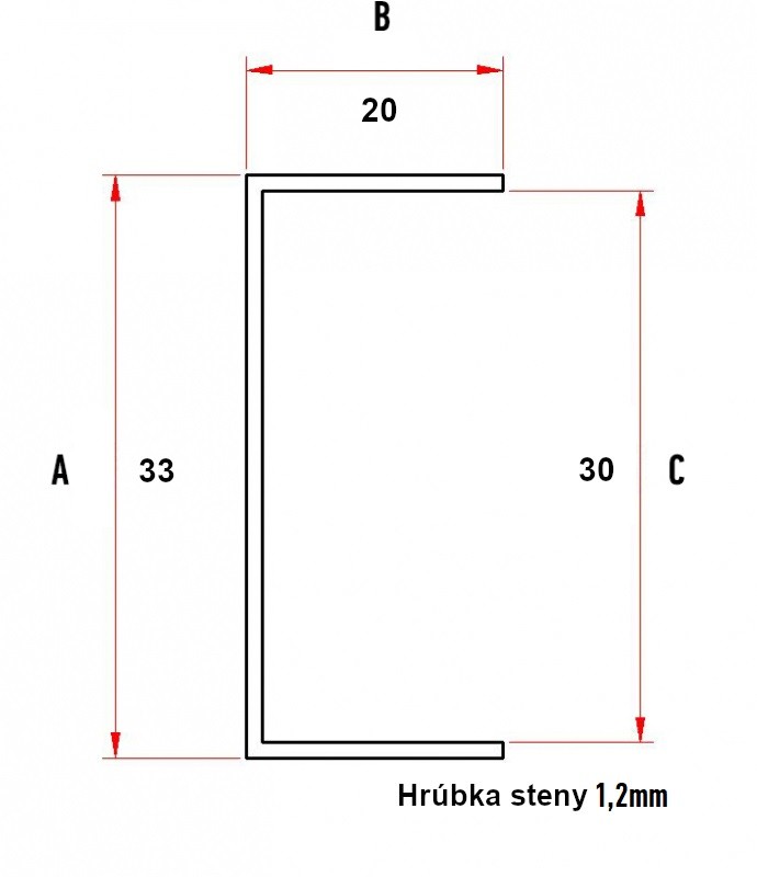 Nerezový U-profil má rozmer 20x33x20x1,2mm, cena je za 2m.