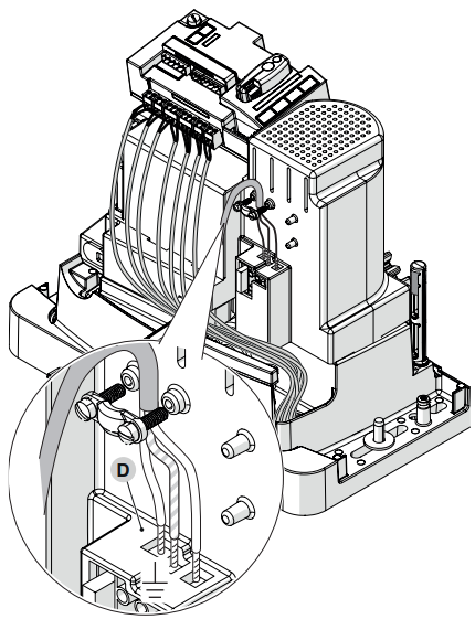 Typická (voliteľná) situácia zapojenia pohonu s príslušenstvom vyzerá nasledovne: