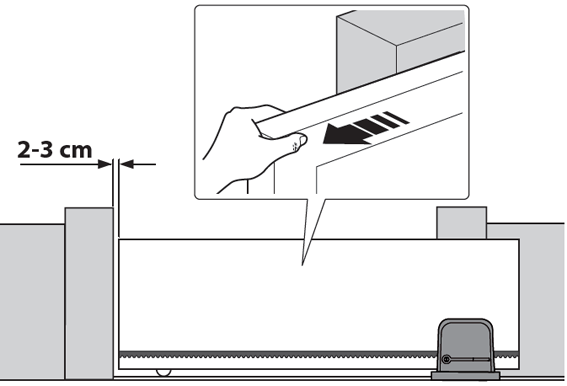 Spôsob osadenia pohonu je pre koľajovú posuvnú bránu a samonosnú posuvnú bránu rozdielny. Pre koľajovú bránu sa spravidla pohon osádza na úroveň výšky terénu, pre samonosnú bránu je potrebné pohon zdvihnúť (závitové tyče Ø8, vlastná konzola, podbetónovanie a pod.). Rozhodujúce je výškové umiestnenie ozubeného hrebeňa, aby ideálne zapadol do ozubeného kolieska pohonu (viď „Ozubený hrebeň a jeho doraz“).