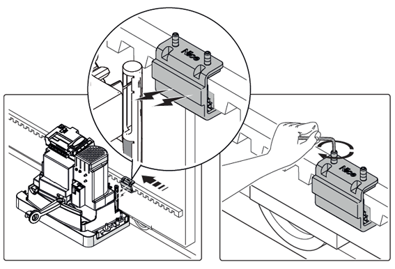 - Komponenty pre montáž pohonu: kotviace prvky, montážna platňa a magnetické dorazy pre indukčný koncový spínač.