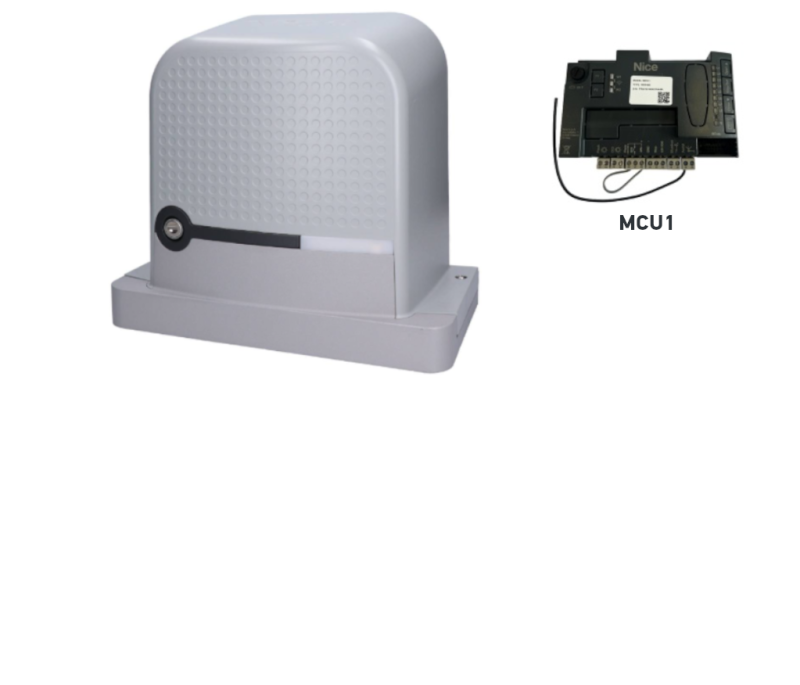 | Typový popis | Elektromechanický prevodový motor pre automatickú prevádzku posuvných brán v privátnom prostredí. Dodávaný vrátane riadiacej jednotky NICE MCU1 s integrovaným rádiovým prijímačom. |