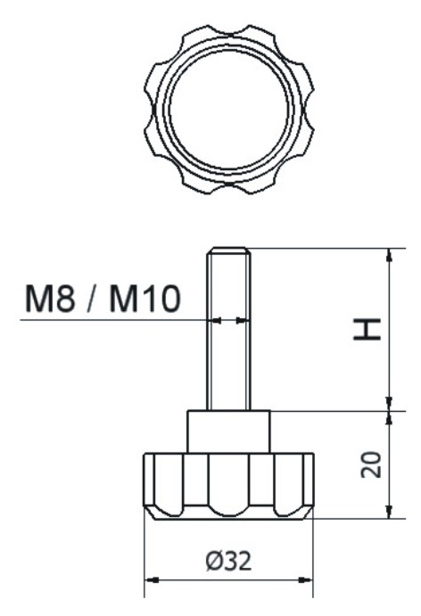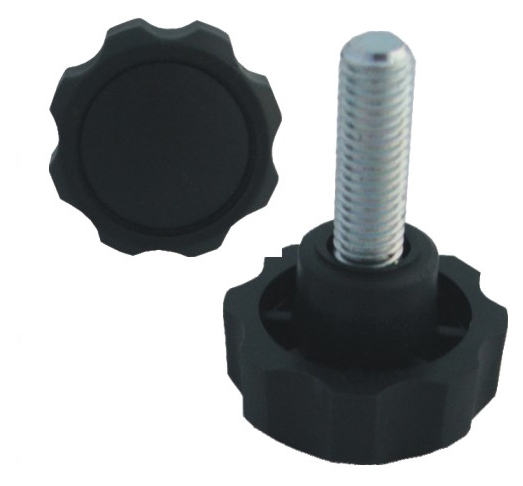 Ovládací hlavice šroubů s metrickým závitem-ruční ovládání. Drážky na vrchní části šroubu, která je z velmi tvrdého plastu, vám umožní pohodlně manipulovat se šroubem ručně, bez nářadí.