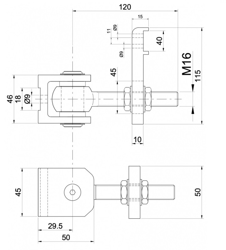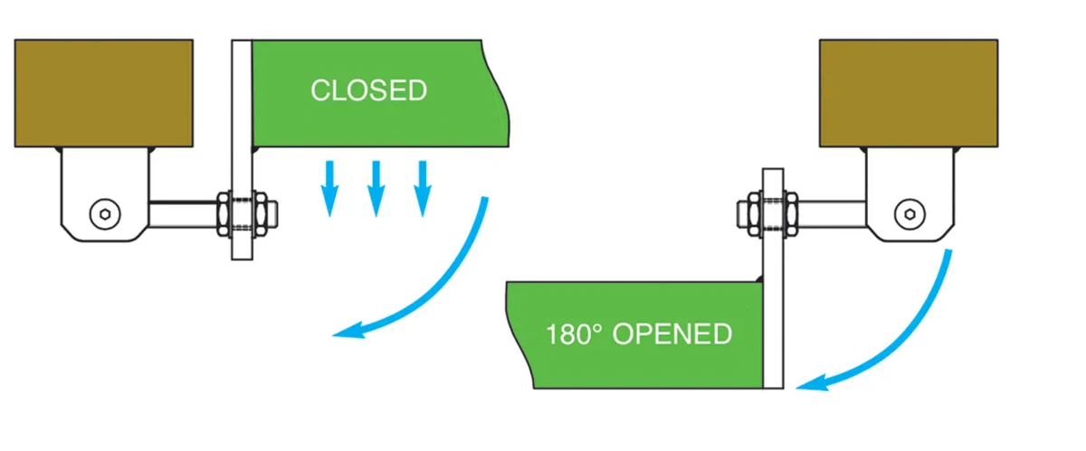 Pánt pre otváranie do 180°, kombinácia nerez + hliník