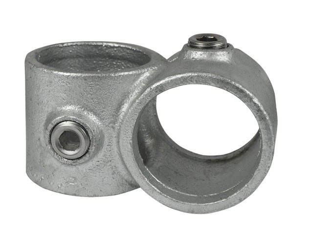 Pozinkovaná spojka trubiek v tvare kontinuálneho kríža s 90° uhlom. Trubky v tomto spoji nie je nutrné rezať, čím sa zvyšuje celková pevnosť konštrukcie. Je vhodná pre spoje v strede konštukcie, kde konštrukčný fitting spája napríklad stredový stĺpik na zábradlí.