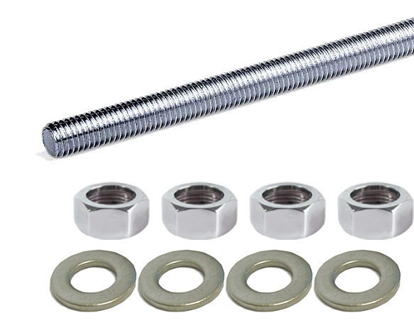 - 1 x závitová tyč M16 v dĺžke 100 cm. Závitovú tyč narežete na 4 kusy po 25 cm a ukotvíte do vyzretého základu na chemickú kotvu, alebo rovno zabetónujete do základu.