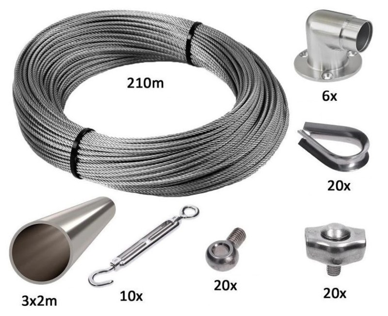 Sada na vytvorenie zelenej steny 2000x20000mm, 4mm lanko, nerez AISI304/316