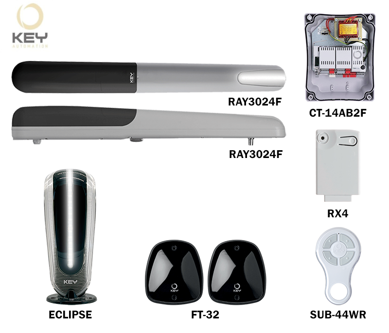 Popis produktu Sada pohonov KEY RAY FASTLINE RAY3024F pre dvojkrídlovú bránu 3m/300kg