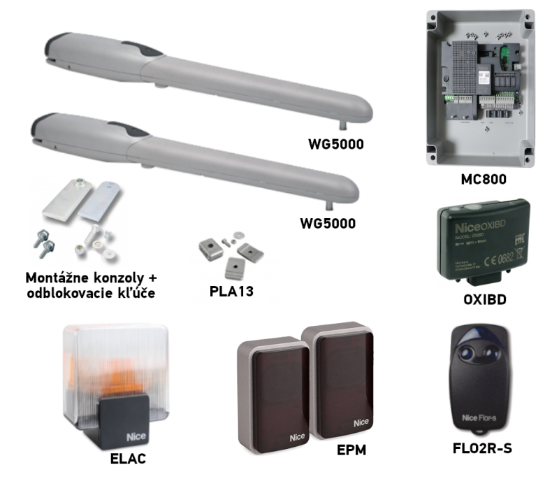 Sada pohonu NICE Wingo 5000 pre dvojkrídlovú bránu - jedno krídlo 3,5m/500kg s príslušenstvom