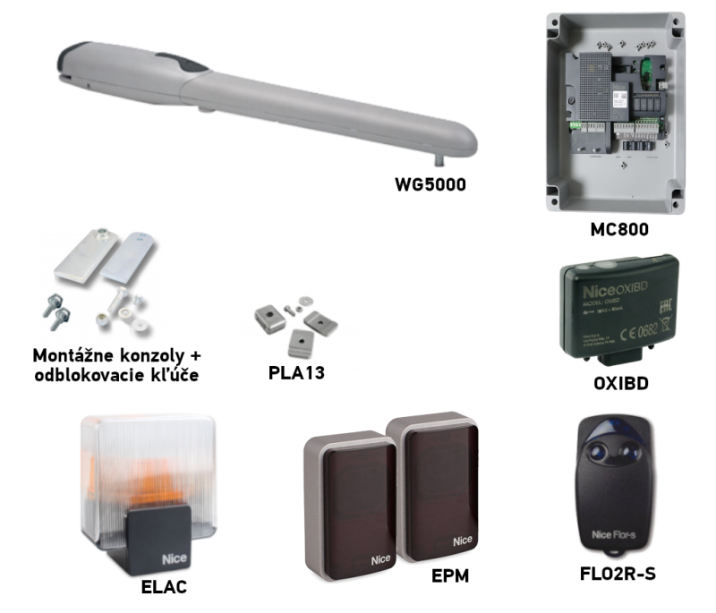 Sada pohonu NICE Wingo 5000 pre jednokrídlovú bránu do 3,5m/500kg s príslušenstvom