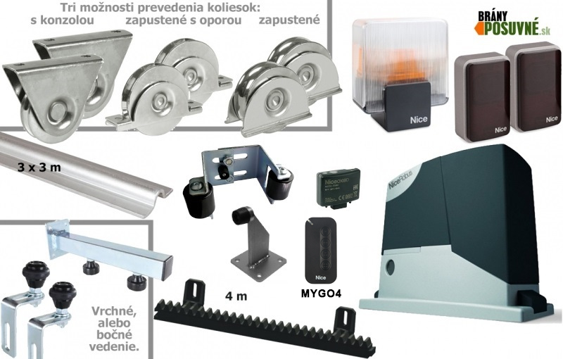 Sada pre výrobu koľajovej brány do 4,5 m s pohonom NICE a príslušenstvom