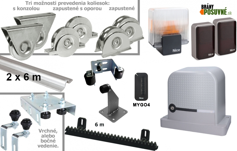 Sada pre výrobu koľajovej brány do 6,5 m s pohonom NICE Robus RBS600 a príslušenstvom
