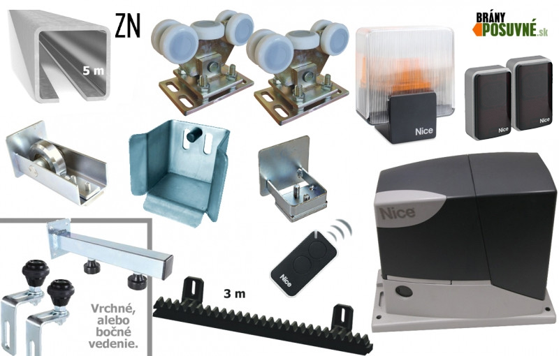 Súčasťou sady je ďalej komplet set pre automatizovanie posuvnej brány: pohon brány a elektronické príslušenstvo (ovládač, maják, fotobunky).