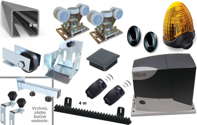Sada pre výrobu samonosnej posuvnej brány do 4 m s pohonom NICE a príslušenstvom