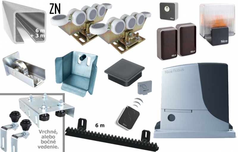Popis produktu Sada pre výrobu samonosnej posuvnej brány do 6,5 m s pozinkovaným C-profilom a pohonom NICE