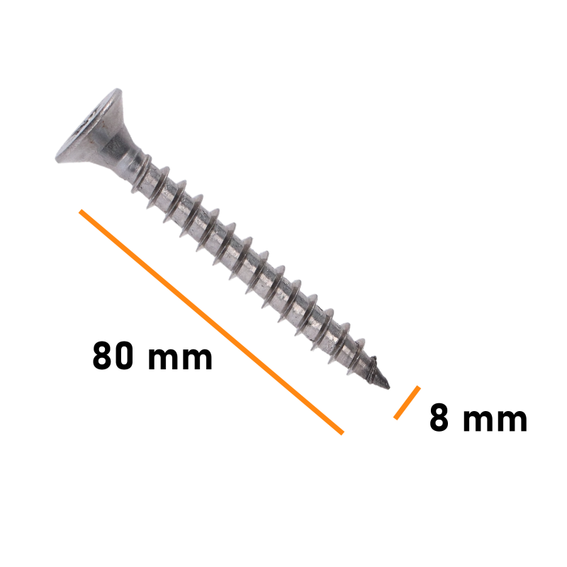 Skrutka samorezná nerezová, zápustná hlava, 8 x 80 mm