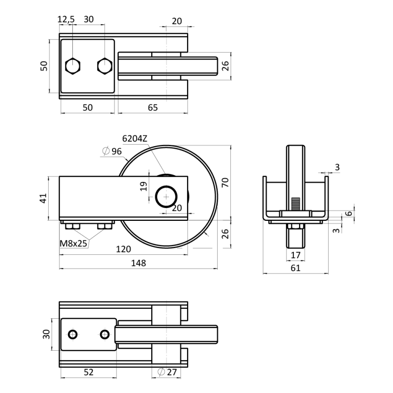 Popis produktu Spodný nájazd - pre C-profil 95x100
