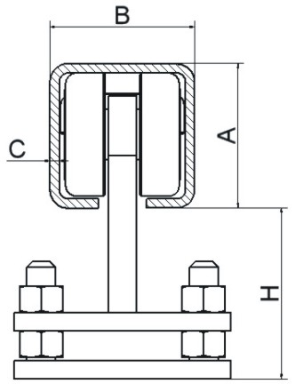 Vozík pevný s reguláciou, 5 roliek s montážnou doskou