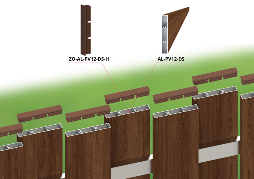 Záslepka je v hnedej farbe, ktorá ladí s hliníkovými profilmi s povrchovou úpravou drevodekor a jej tvar kopíruje vnútorné drážky tak, aby presne sedela do profilu.