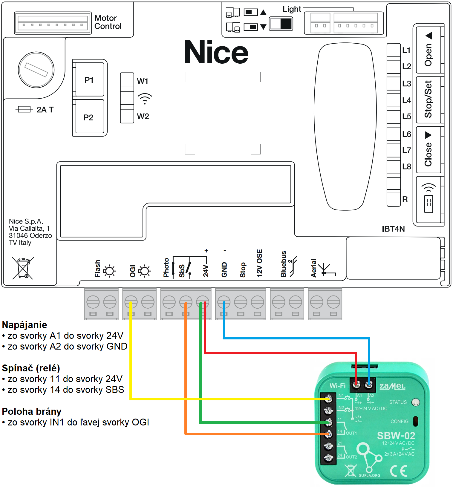 Zapojenie WiFi modulu Zamel SBW-02 do riadiacej jednotky pohonu